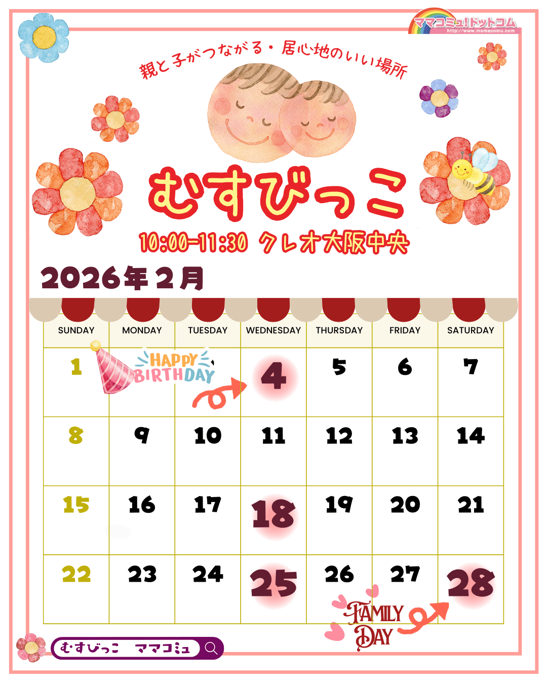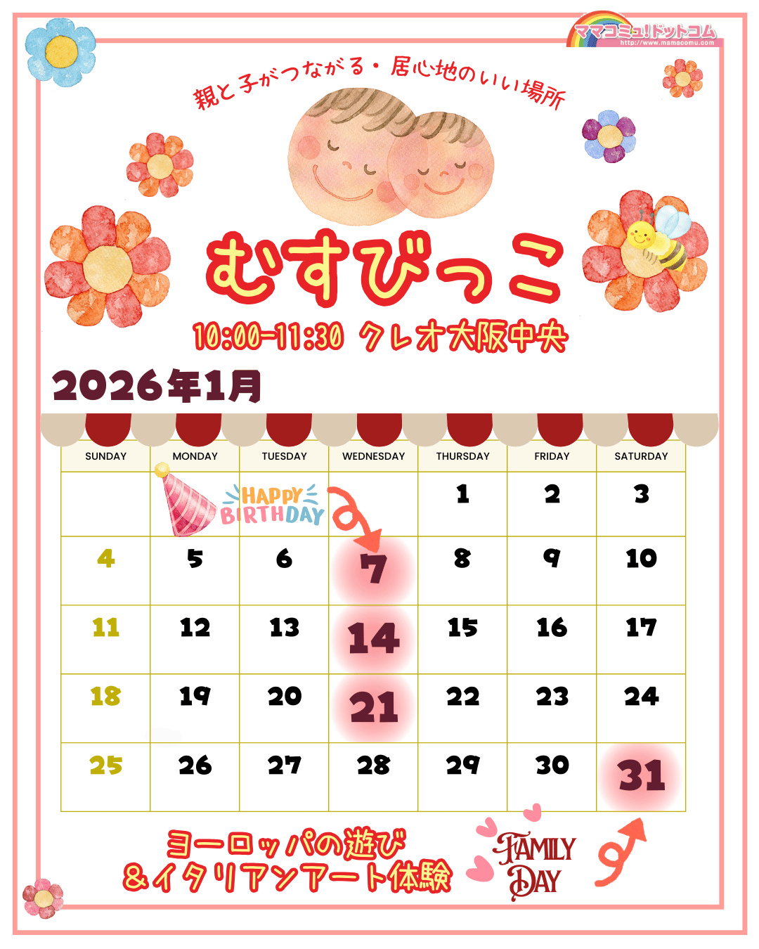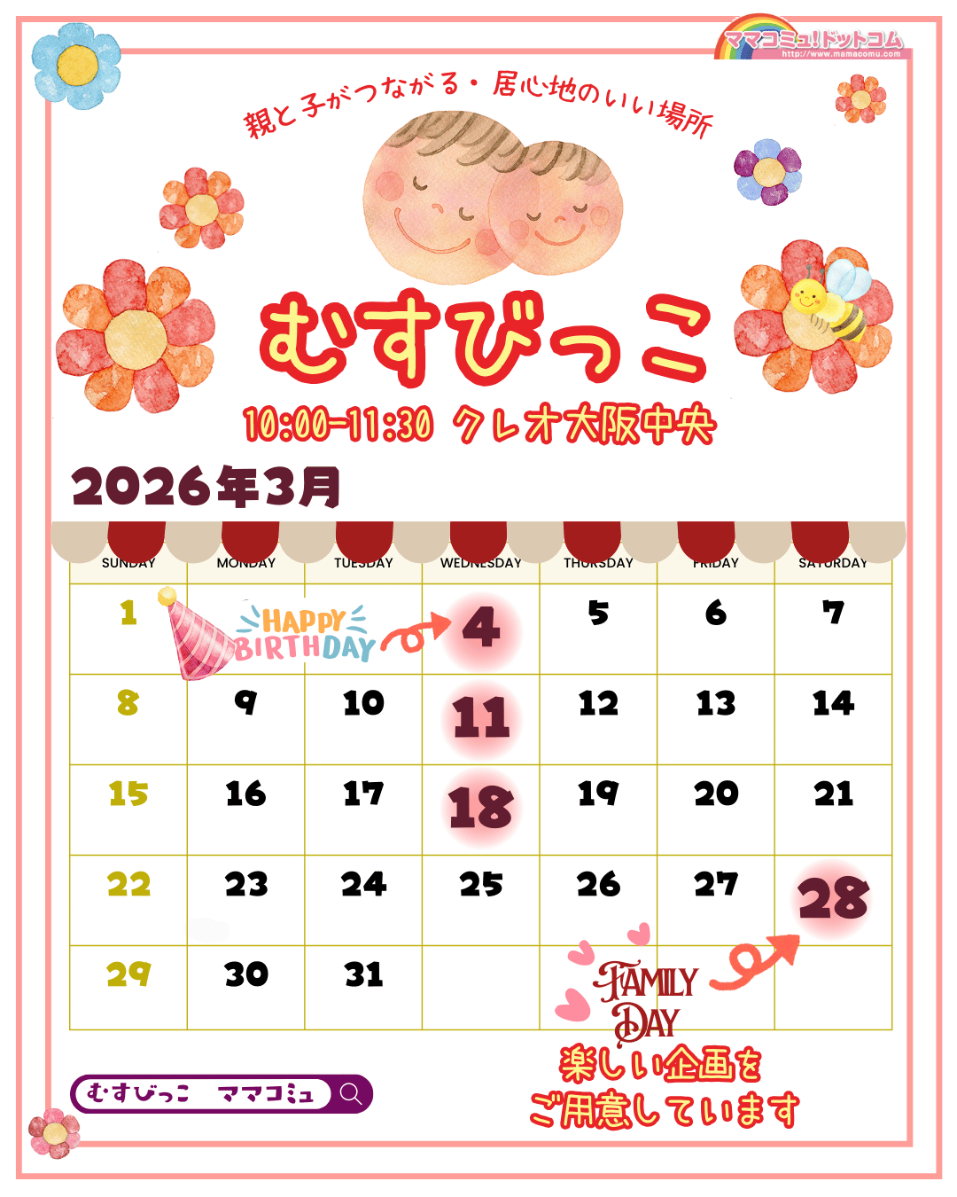 🌼毎月最初のむすびっこで「お誕生お祝い」をします。お誕生月、ハーフバースデーの方はお申し込みの際にお伝えください。